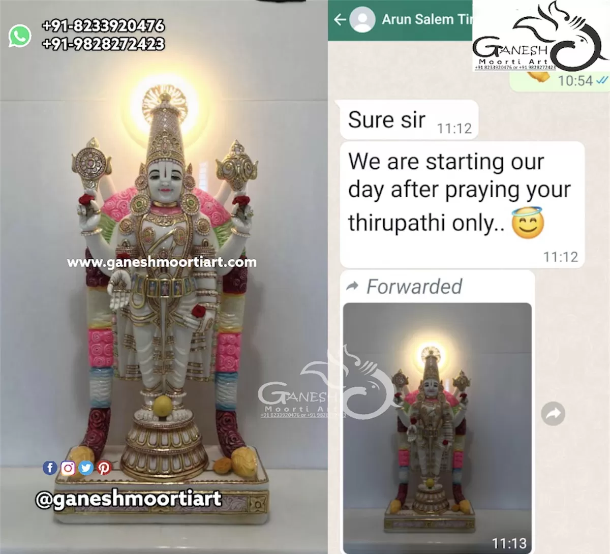 Finding Ganesh Moorti Art, was meant to be for my family. after years and years of searching for the perfect Balaji moorti that was carved beautifully as well as having a aura and presence (even through pictures and videos) I found the perfect one with Mr. Sharma. He was professional, quick shipping and very detail orientated. Thank you for bringing this beautiful Tirupati Balaji to our home.